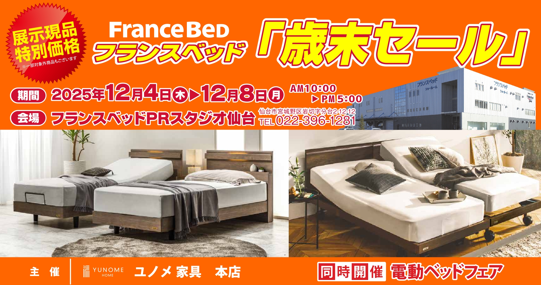『歳末セール』特別招待会 inフランスベッド仙台PRスタジオ開催期間12月4日(木)〜12月8日(月)高品質な国産ベッドが大特価!必見のお買い得イベントです! ユノメ家具では、フランスベッド仙台PRスタジオにて、12月4日(木)~12月8日(月)までの5日間『歳末セール』 inフランスベッド仙台PRス…