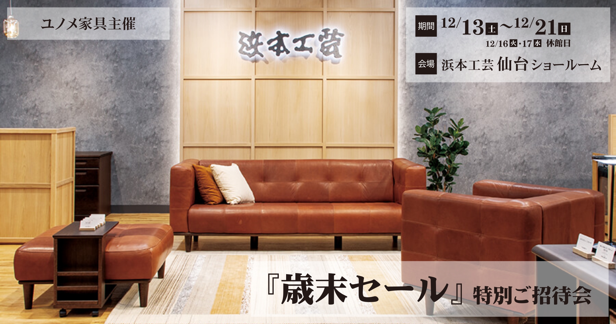 浜本工芸仙台ショールーム 【歳末セール】特別ご招待会開催期間12月13日(土)から12月21日(日)※16日(火)・17日(水)は休館日上質なナラ・オーク材でつくった浜本工芸の家具 12月13日(土)から12月21日(日)まで浜本工芸仙台ショールームにて、【歳末セール】特別ご招待会を開催致します。 ショールームにはソファやダイニングセ…